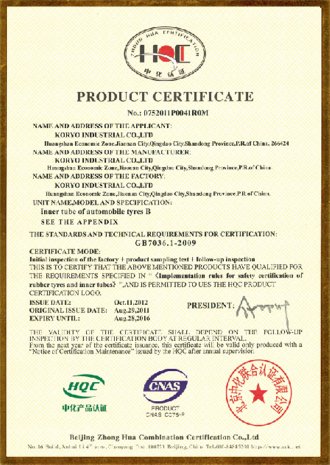 Koryo Tyre products and service quality have been approved and conformed with U.S. DOT, ISO 9001, European Community Standard ECE, GULF standard GCC, Nigeria COC,India BIS, Indonesia SNI, and Brazil INMETRO.